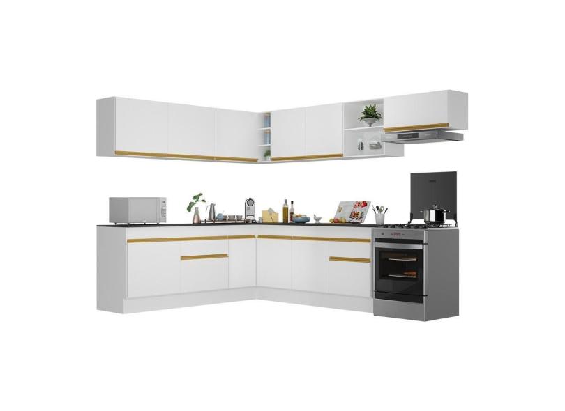 Armário De Cozinha Completa De Canto V2103 Branco Dourado