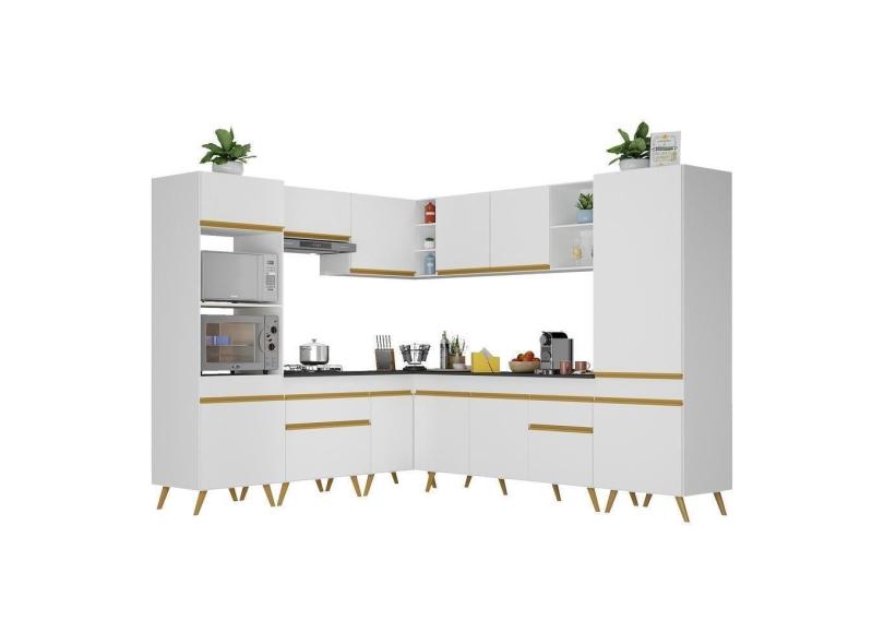 O menor preço encontrado no Brasil para Armário De Cozinha Completa De Canto V246 Branco Dourado atualmente é R$ 2.209,99.