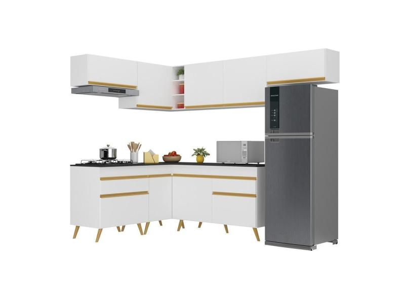 O menor preço encontrado no Brasil para Armário De Cozinha Completa De Canto V269 Branco Dourado atualmente é R$ 1.709,99.