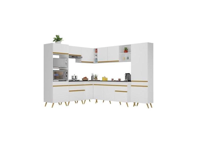 Armário de Cozinha Completa de Canto Veneza Multimóveis V2047 Branco/dourado