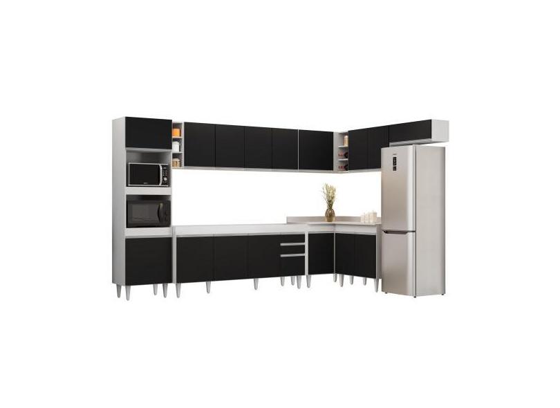 Armário De Cozinha Modulada De Canto 9 Peças Cp04 Balcão Branco/Preto