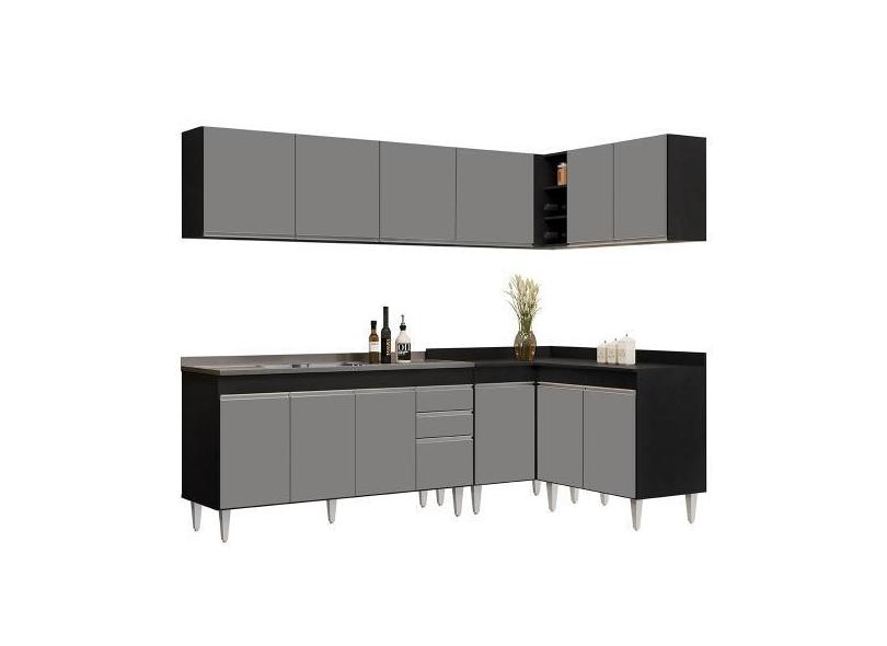 Armário de Cozinha Modulado de Canto 6 Peças CP33 com Pia Inox Preto/C