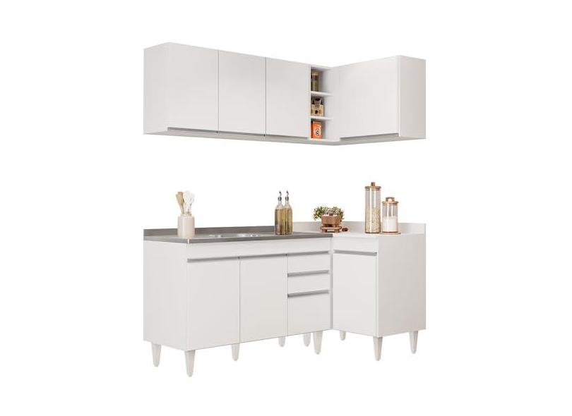 O menor preço encontrado no Brasil para Armário de Cozinha Modulado de Canto Esquerdo 4 Peças CP48 com Pia Inox Branco - Lumil atualmente é R$ 1.891,91.