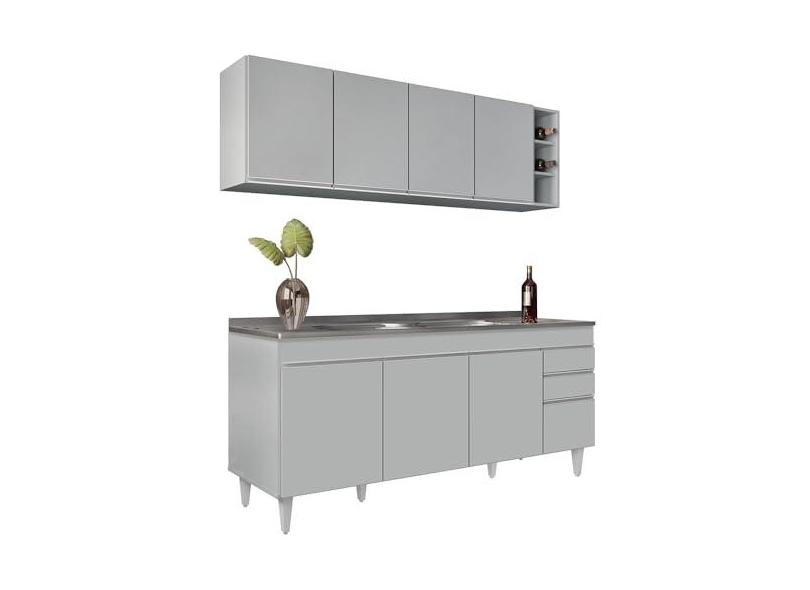 O menor preço encontrado no Brasil para Armário de Cozinha Nevada e Balcão Gabinete 180cm Com Pia Dallas Cinza Claro - Lumil atualmente é R$ 1.777,51.