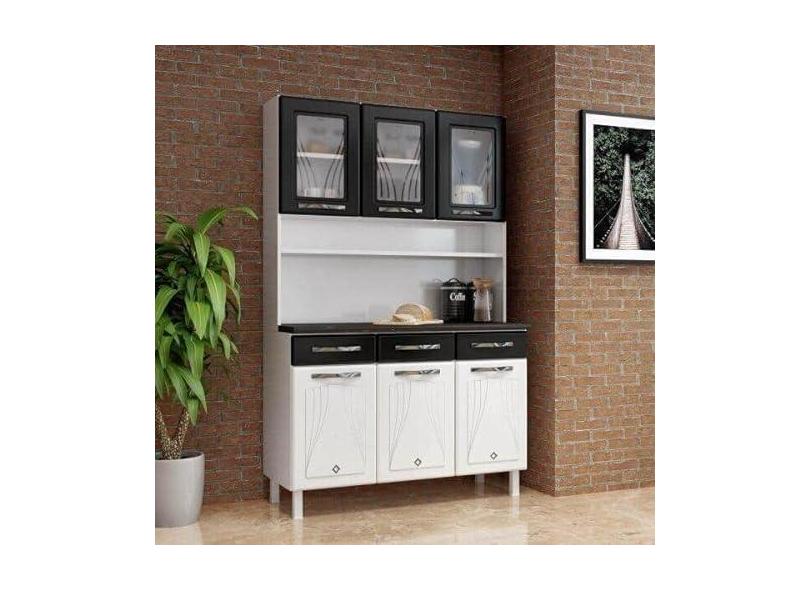 O menor preço encontrado no Brasil para Armário para Cozinha 6 Portas 3 Gavetas com Tampo e Vidro Star New Telasul Branco/Preto atualmente é R$ 959,98.