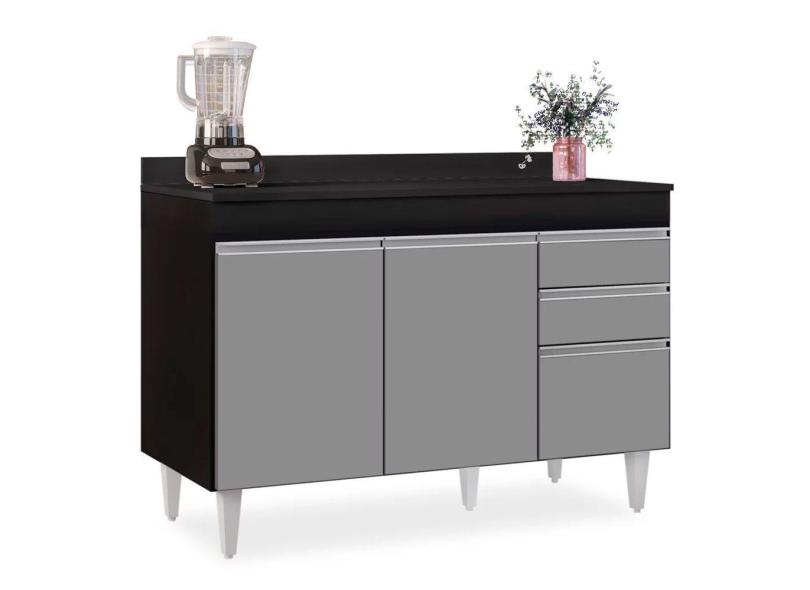 Balcão 02 Gavetas Beth 120Cm Preto Cinza