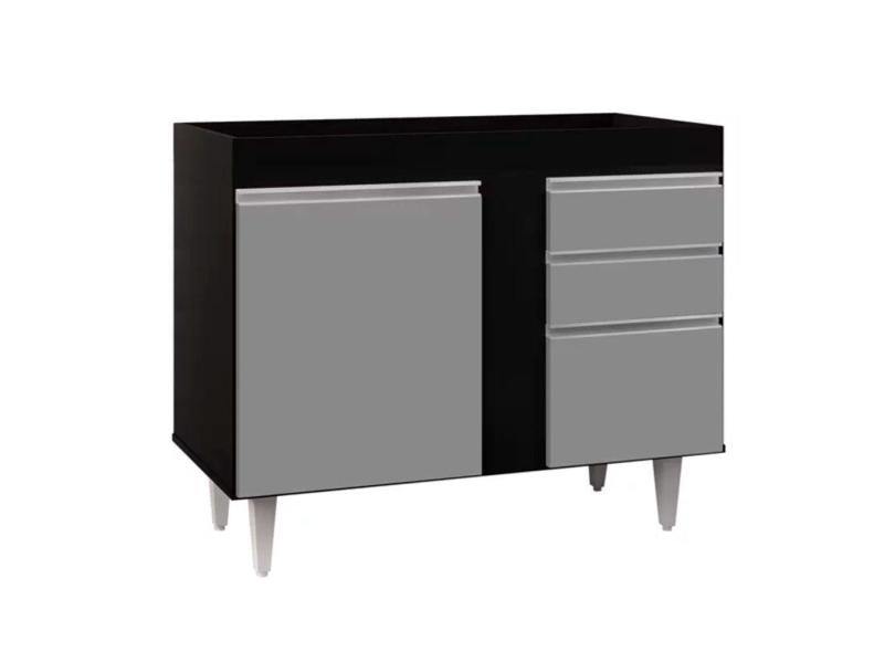 Balcão 02 Gavetas Bia 100Cm Preto Cinza