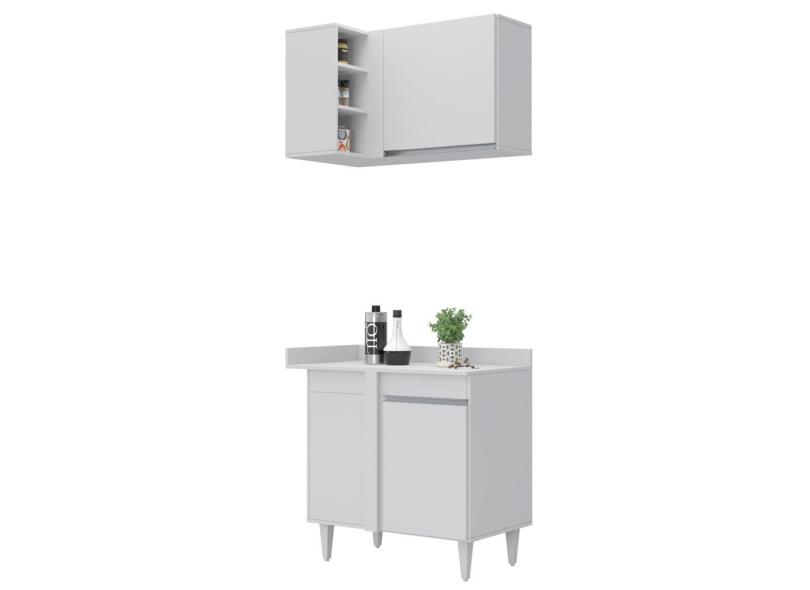 Balcão 1 Porta Denver E Armário Aéreo Austin De Canto Branco - Lumil
