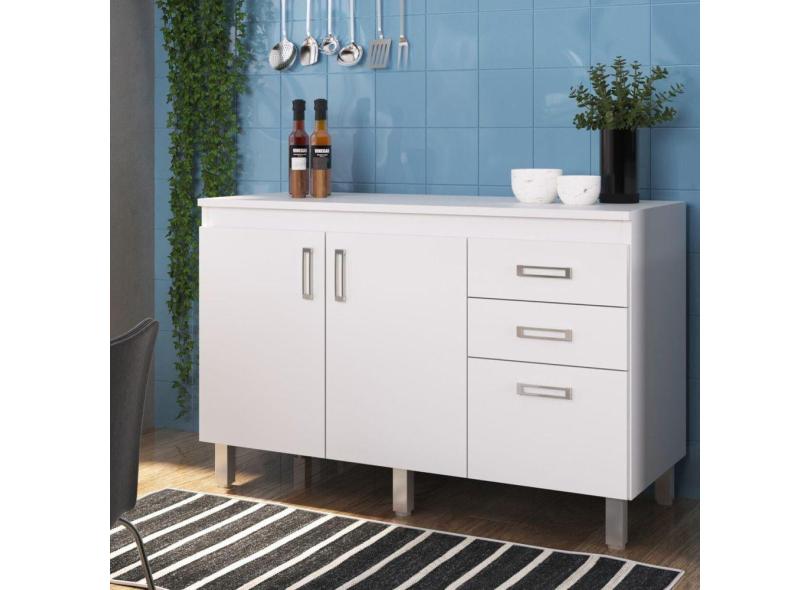 Balcão com Tampo 120cm 3 Portas 2 Gavetas Flex Branco