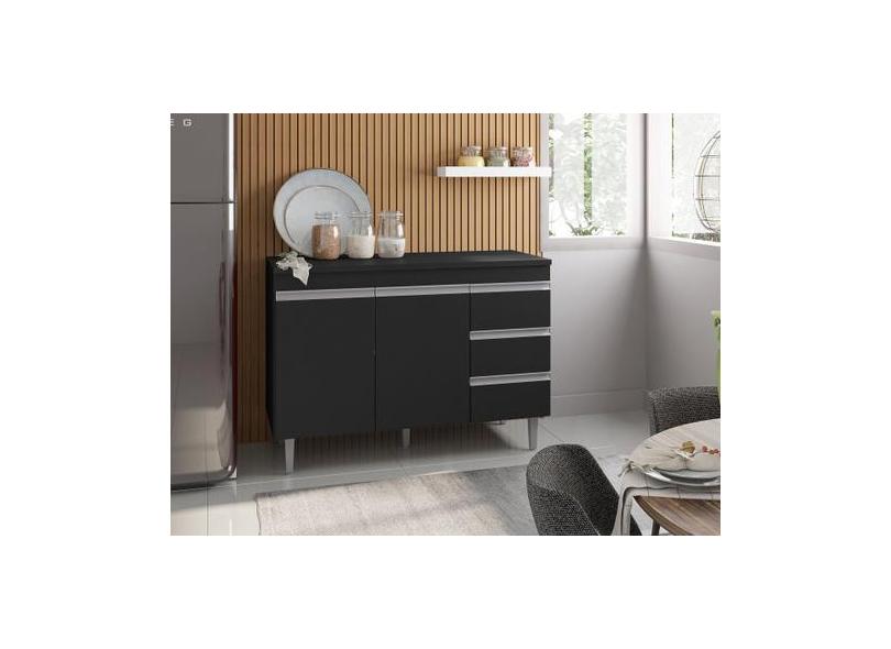 Balcão Cozinha Andréia Pia 120 cm Com Pés 2 Portas 3 Gavetas Preto - A