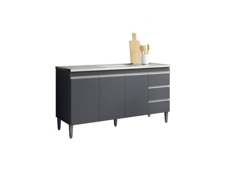 Balcão Cozinha Andréia Pia 160 cm Com Pés 3 Portas 3 Gavetas Cz - AJL Móveis
