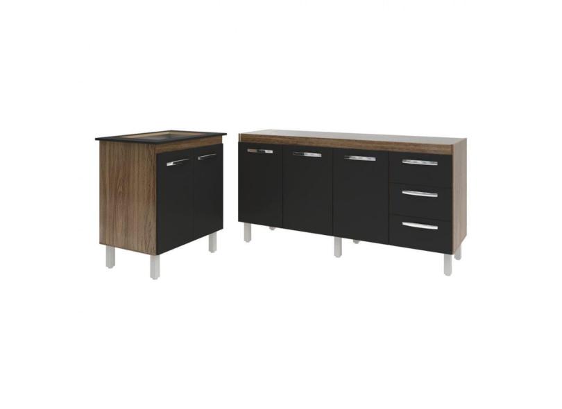 O menor preço encontrado no Brasil para Balcão Cozinha Gabinete Para Pia 138 cm Carine e Balcão Para Cooktop 4 Bocas Fran Savana Preto atualmente é R$ 646,71.