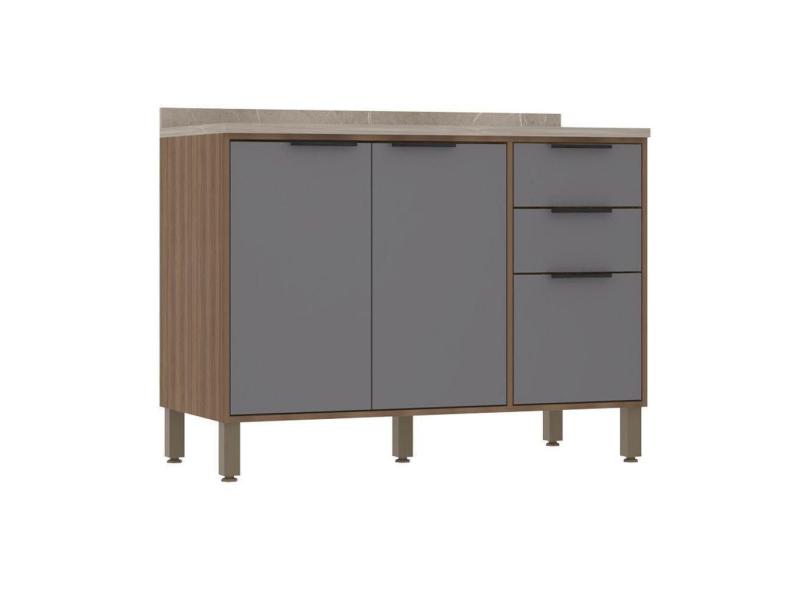 Balcão De Cozinha 120cm 2 Portas E 3 Gavetas Com Tampo Aspen Luciane Móveis Vanilla Com Cinza Puro