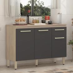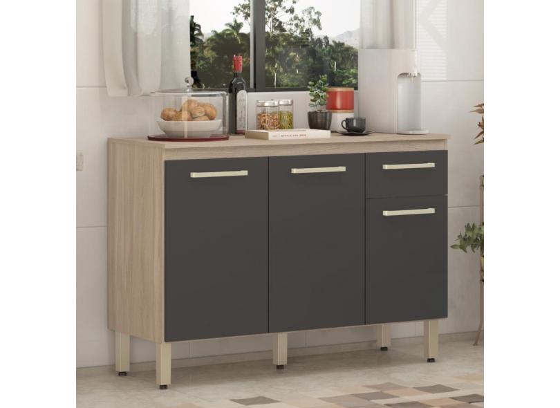 Balcão De Cozinha 3 Portas E 1 Gaveta Dama Avena Touch-grafito