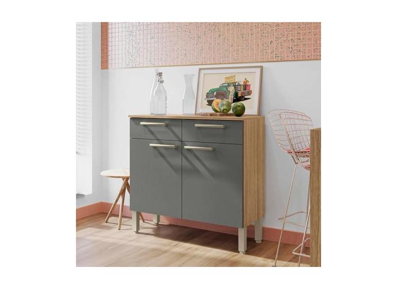 Balcão de Cozinha 90 cm 2 Portas e 2 Gavetas Freijó Supremo Cp Ripado Freijó Nala Kits Paraná