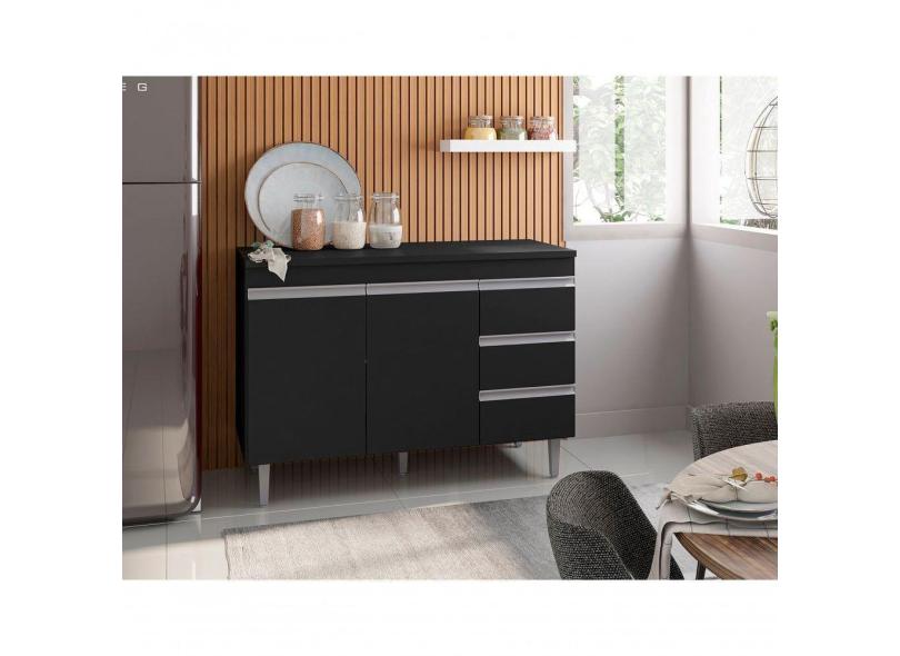 Balcão De Cozinha Andréia 100Cm Preto + Tampo