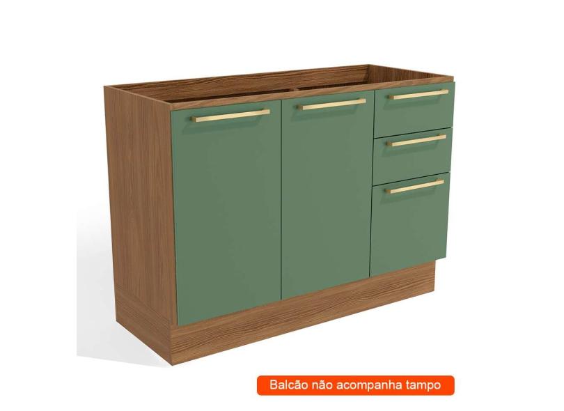 Balcão De Cozinha Botanic 2 Pt 3 Gv Nogueira E Verde Oliva