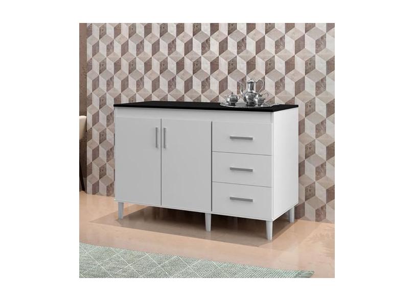 Balcão De Cozinha Canadense 2 Portas 3 Gavetas Branco/Preto - J&A Móve