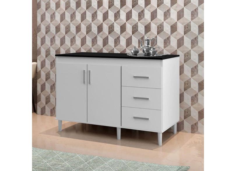 Balcão de Cozinha Canadense 2 Portas 3 Gavetas Branco/Preto - J&a Móveis
