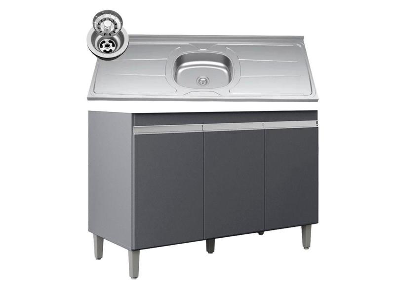 O menor preço encontrado no Brasil para Balcão De Cozinha Com Pia Inox 120cm 3 Portas Manu Cinza - Ajl Móveis atualmente é R$ 636,37.
