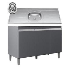 Balcão De Cozinha Com Pia Inox 120cm 3 Portas Manu Cinza - Ajl Móveis