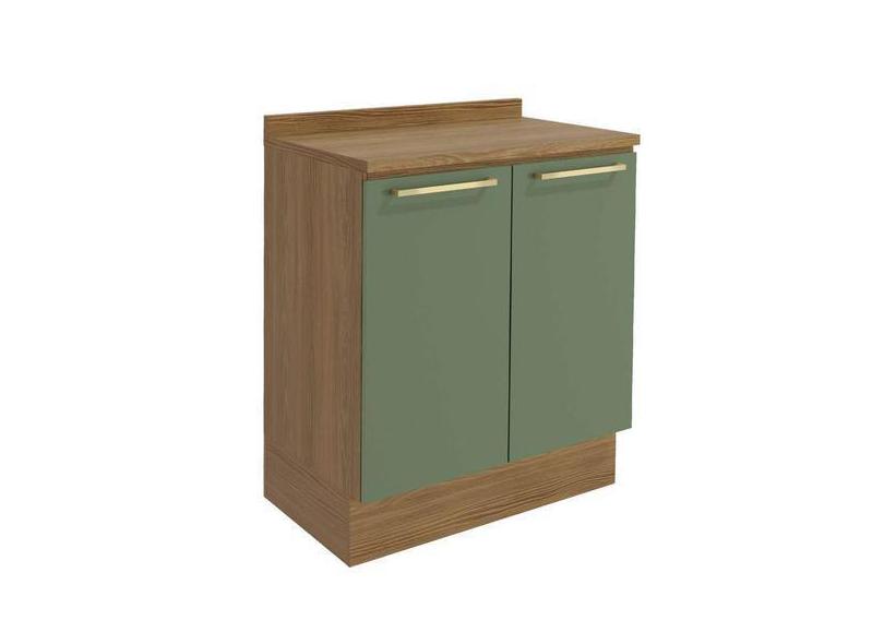 Balcão De Cozinha Com Tampo Botanic 2 Pt Verde Oliva E Nogueira - Kapp