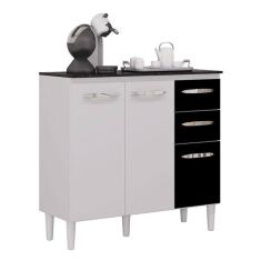 Balcão De Cozinha Isadora Branco Preto - Poquema