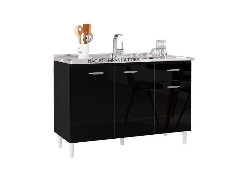 Balcão De Pia 120 Cm Preto Poquema - Poquema Industria