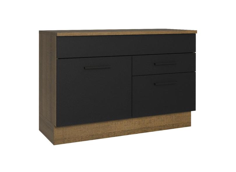 Balcão de Pia Cozinha 1 Porta e 2 Gavetas (Com Tampo) Rustic/Preto Agata Madesa