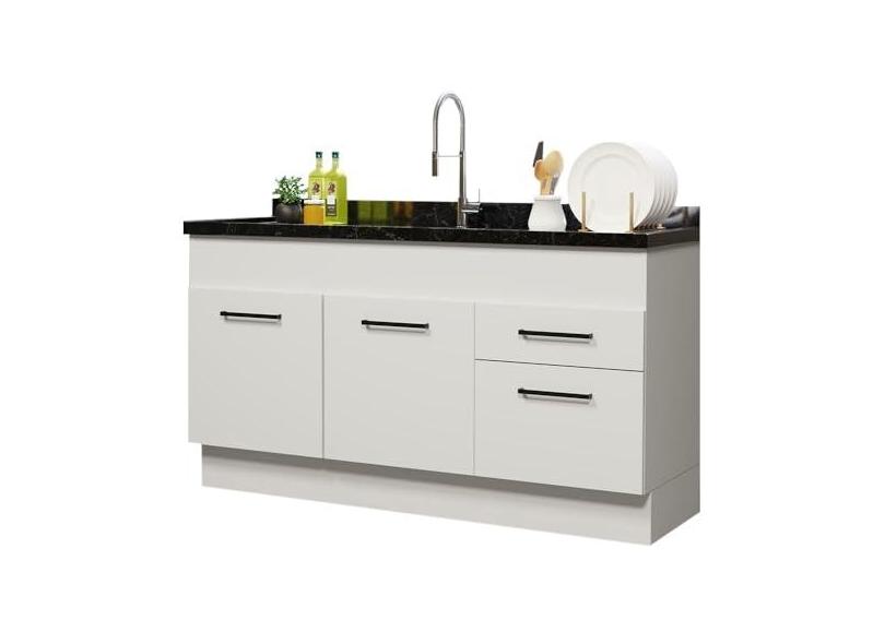 Balcão de Pia Madesa Agata 150 cm 2 Portas e 2 Gavetas (sem Tampo e Pia) - Branco