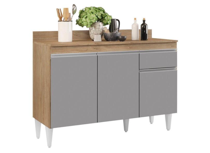 Balcão Gabinete 120cm Com Tampo 3 Portas 1 Gaveta Arizona Castanho/Cinza - Lumil Móveis