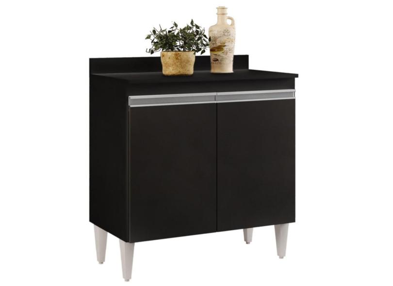 Balcão Gabinete 80cm 2 Portas Hawai Preto - Lumil Móveis