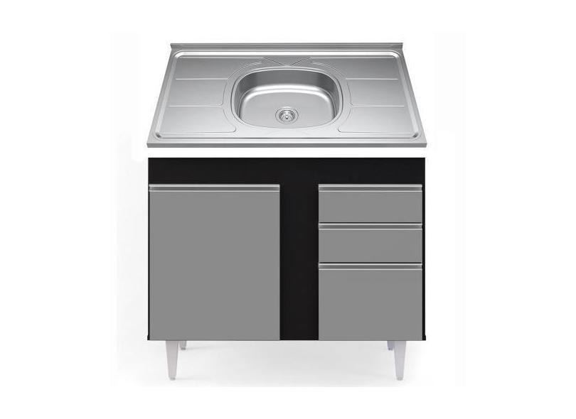 O menor preço encontrado no Brasil para Balcão Gabinete Com Pia Inox 100cm 2 Portas 2 Gavetas Luziania Preto/C atualmente é R$ 880,70.
