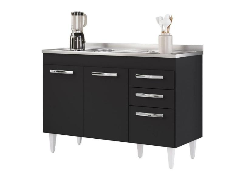 O menor preço encontrado no Brasil para Balcão Gabinete Com Pia Inox 120cm 3 Portas 2 Gavetas Suécia Preto - Lumil atualmente é R$ 815,67.