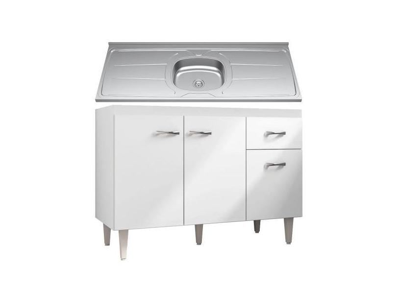 Balcão Gabinete Com Pia Inox 120cm 3 Portas E 1 Gaveta Flex Gabriela B