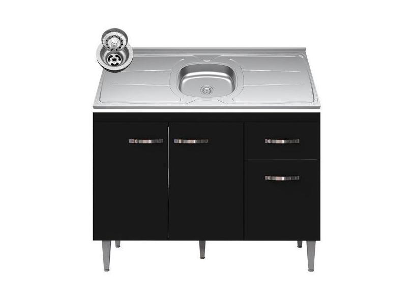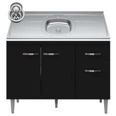 Balcão Gabinete Com Pia Inox 120cm 3 Portas E 1 Gaveta Gabriela Preto