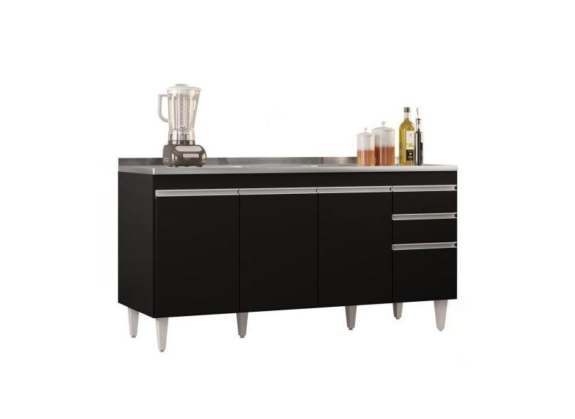Balcão Gabinete Com Pia Inox 160cm Arkansas Preto Lumil - Lumil Móvei
