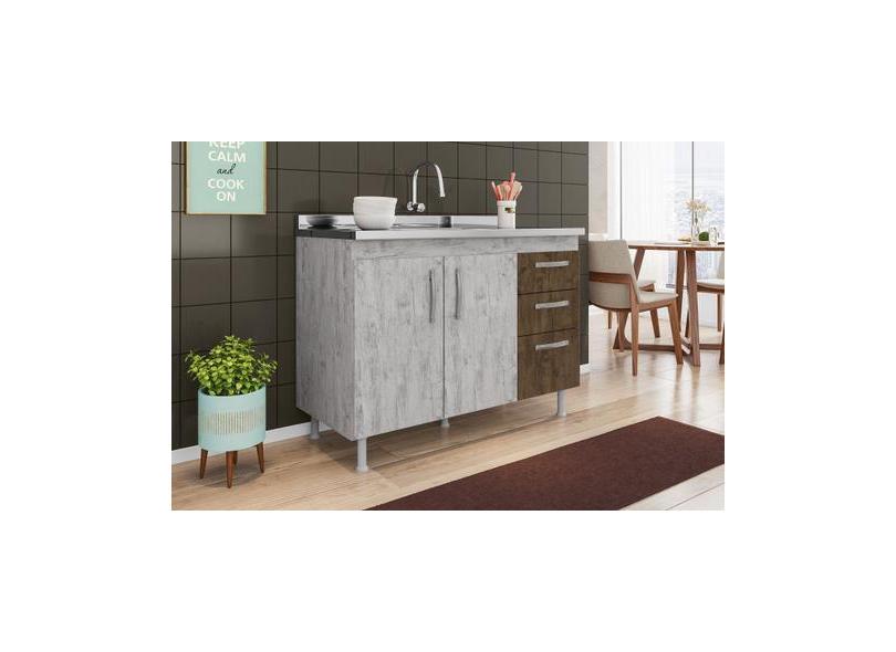 Balcão Gabinete de Pia Nathan 120cm Rústico/Chocolate S/ Tampo