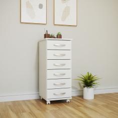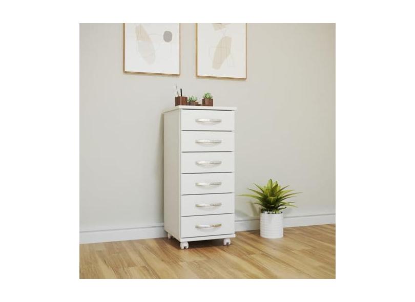 Balcão Multiuso 6 Gavetas com Rodizio Branco
