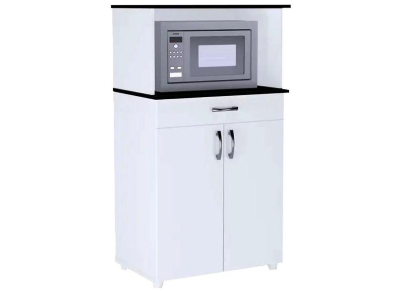 Balcão Multiuso Para Forno Microondas Aurora Branco Tampo Preto