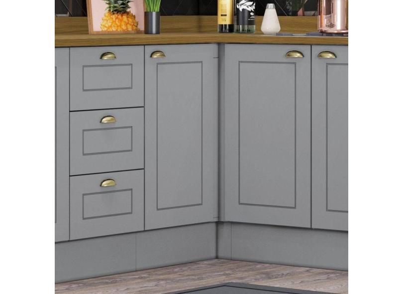 Balcão Para Cozinha Canto Reto 1 Porta com Tampo Emily Cinza/Marrom