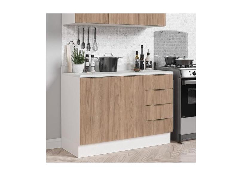Balcão Pia 120cm Com Tampo Com Rodapé Puxador 150mm Ipanema Cabecasa M