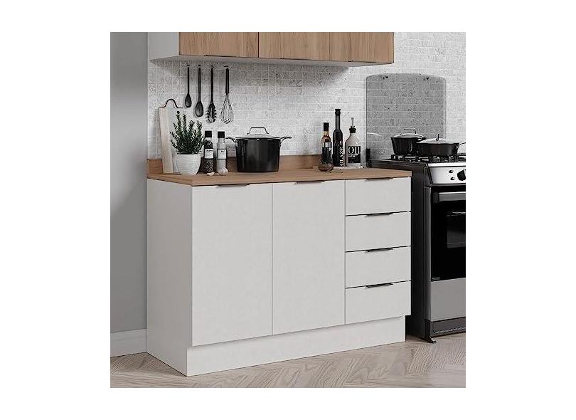Balcão Pia 2 Portas 4 Gavetas com Tampo e Rodapé Ipanema Cabecasa Madeiramadeira Branco