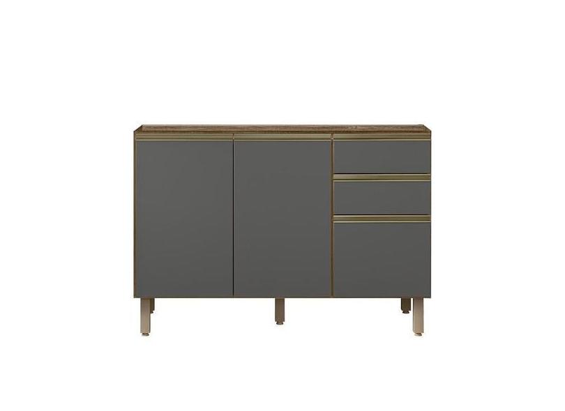 Balcão Pia Kali Premium 120cm 2 Portas E 3 Gavetas Carvalho/Chumbo - N