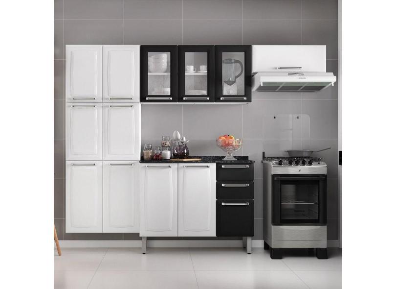 Cozinha 4 Peças 13 Portas 2 Gavetas Paneleiro Duplo em Aço Luce Branco/Preto