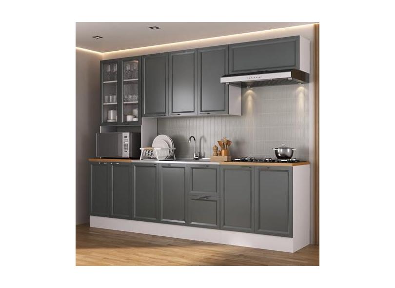 Cozinha Compacta 5 Peças 1 Paneleiro Duplo 2 Aéreos 2 Balcões Soho Cabecasa Madeiramadeira Branco/Grafite
