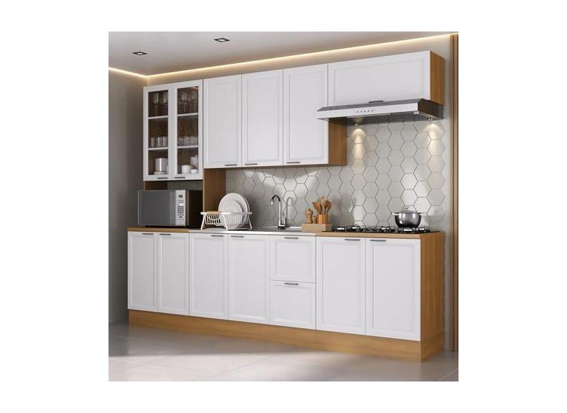 Cozinha Compacta 5 Peças 1 Paneleiro Duplo 2 Aéreos 2 Balcões Soho Cabecasa Madeiramadeira Freijó/Branco