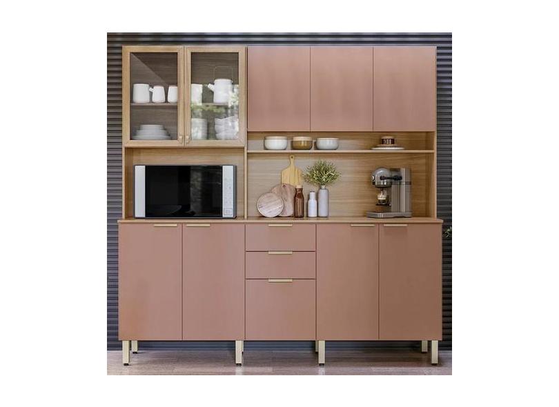 Cozinha Compacta Amora 10 Portas e 2 Gavetas- Amendoa Marsala - DEMOBI