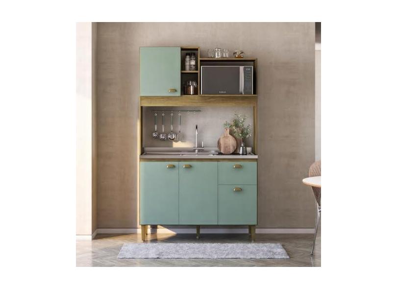 Cozinha Compacta Azaleia de 120cm 4 Portas e 1 Gaveta Bellagio Mel/Verde Bellagio