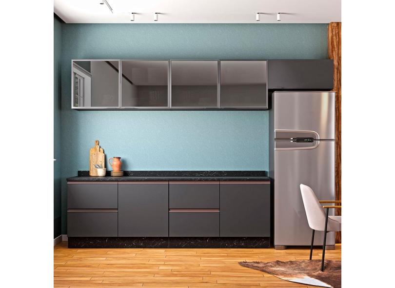 O menor preço encontrado no Brasil para Cozinha Compacta Bartira Línea com 7 Portas, 6 Gavetas e 4 Prateleiras - 320cm de largura - Grafite atualmente é R$ 3.199,00.